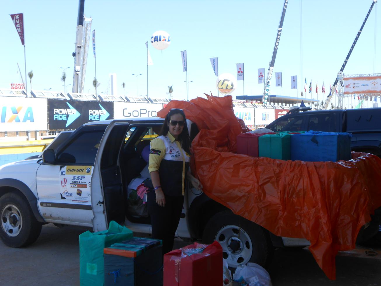 Local da largada do Rally dos Sertões – Goiânia, serviu para o encontro com nossos parceiros, para arrumar a carga e para reabastecer nossa picape com BOLAS, CHOCOLATES e outras doações.
