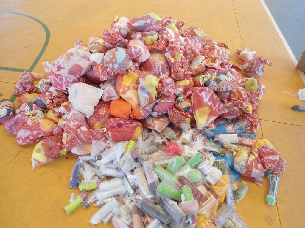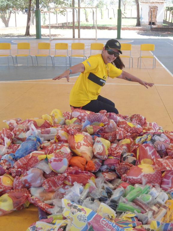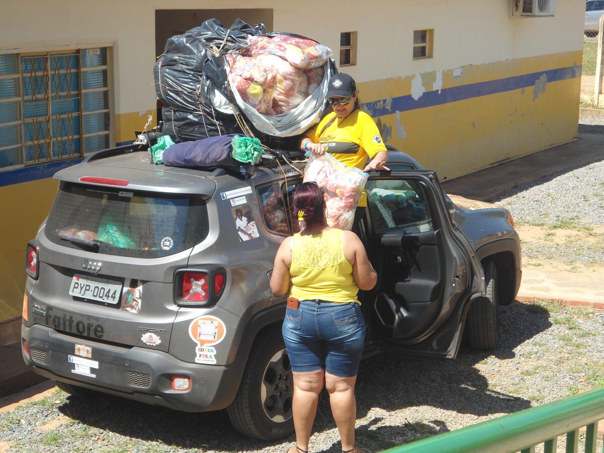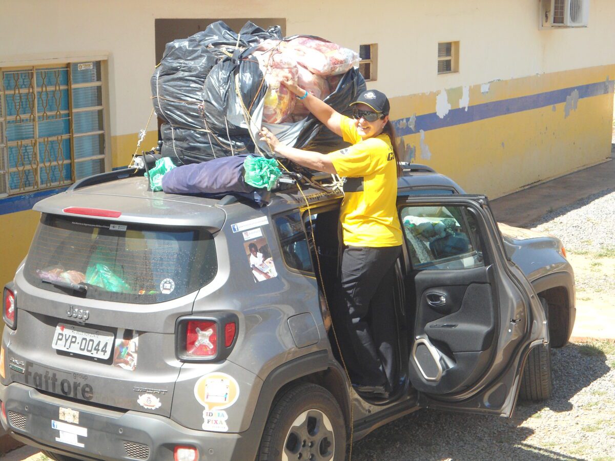 Era hora de descarregar uma das maiores cargas que trouxemos e organizar aquele tanto de kits que seriam doados e assim foi feito. As professoras colaboram e logo tudo estava prontinho!
